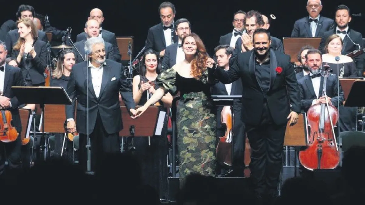 Yaşayan en büyük tenorlardan Placido Domingo, Türkiye İş Bankası’nın 100. Yılı Gala Konseri’nde sanatseverlerle buluştu. Ayazağa’daki bir spor salonunda gerçekleşen konserde Tenor Murat Karahan, soprano Elena Stikhina ve Carlo Tenan yönetimindeki BİFO da sahnedeydi. 83 yaşındaki usta sanatçı, performansıyla ayakta alkışlandı. Puccini’nin sevilen operası ‘Turandot’ta salonda yer yerinden oynarken, efsane Baba filminin Nina Rota imzalı unutulmaz bestesi de seslendirilen eserler arasındaydı. Türkiye’nin gururu Murat Karahan’ın seslendirdiği Kıyamam ve Yaralı Gönül parçaları sonrasında da alkışlar uzun süre dinmedi. Yaklaşık 100 dakika süren konser, izleyicinin yoğun alkışlarıyla 20 dakika daha devam etti. Konserin sonunda Senede Bir Gün şarkısını seslendiren üç sanatçı, dört kez bis yaptı.