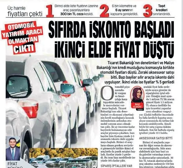 Otomobil piyasasında rüzgâr tersine döndü. Ticaret ve Maliye Bakanlıklarının vatandaşı korumak için aldığı sert tedbirler güçlü sonuçlar verdi. 6 ay öncesine kadar “Araç yok 3 ay bekleyin” diyen bayiler, şimdi arabayı 3 saatte teslim ediyor. “Talep çok sıraya girin”, “Sıraya girmek için ek ücret ödeyin”, “Bu pakete ek aksesuar ücreti verin”, “Cila-boya mecburi”, “Bu kasko şart” diyerek işi fırsatçılığa döken galeri ve bayiler, şimdi arka arkaya hayata geçirdikleri kampanyalarla müşteri aramaya başladı. Öyle ki kimi bayi mevcut aracını sıfır kilometre araçla değiştirene 50 ila 100 bin TL arasında takas desteği sunarken kimi de araç fiyatının yüzde 10’una kadar 12 ay 0.99 faizle kredi desteği veriyor. Otomobilde liste fiyatının yüzde 10-20 üzerinde yapılan balon satışlar sönerken, bazı modellerde liste fiyatına yüzde 5-10 indirim dahi yapılıyor.