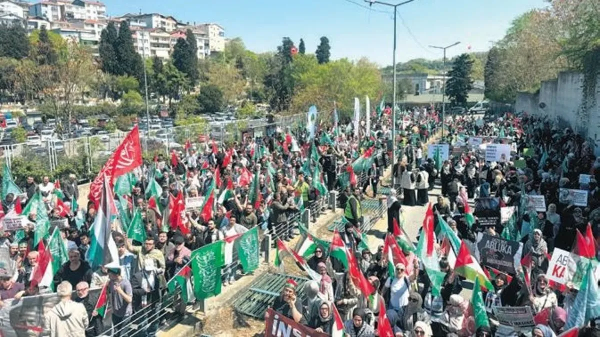İHH İnsani Yardım Vakfı, Özgür-Der, İnsan ve Medeniyet Hareketi ile Peygamber Sevdalıları Vakfı’nın öncülüğünde bir araya gelen sivil toplum kuruluşlarının üyeleri, İsrail’in Gazze’ye yönelik saldırılarını destekleyen ABD’yi Sarıyer’deki İstanbul Başkonsolosluğu önünde protesto etti.Katılımcılar adına konuşan Özgür-Der Genel Başkanı Rıdvan Kaya, “Siyonistler katlediyor, ABD onlara para yağdırıyor” dedi. Grup, konsolosluk önünde Filistinliler için dua ettikten sonra dağıldı.