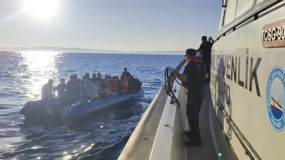 Bölgeye ekipler sevk edilirken, Sahil Güvenlik Botları ‘KB-4305’ ve ‘TCSG-905’ tarafından hareket halinde durdurulan lastik bot içinde 18’i çocuk 43 kaçak göçmen yakalandı.