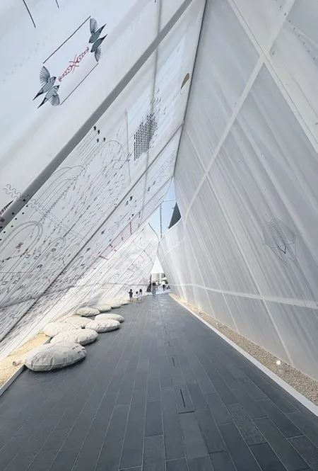 Bu yıl beni asıl heyecanlandıran sürprizlerden biri ise Tadao Ando’nun duyurduğu yeni müze projesi oldu. Dubai’nin doğal tuzlu su körfezine bakan kıvrımlı formu, ilk eskizlerine baktığım anda içimde bir merak dalgası yarattı. Beyaz yüzeyden geçen üçgen açıklıklar, binanın yukarı doğru burgu etkisi yaratmasına izin veriyor; adeta gün ışığıyla dans eden bir heykel gibi. Beş katlı yapı, çağdaş sanat için ayrılmış geniş galeri alanlarını, merkezdeki dairesel bir ışıklığın aydınlattığı bir omurga etrafında topluyor.