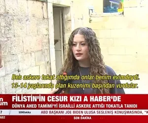 Tüm dünya Filistin’in cesur kızı Ahed Tamimi‘yi (22) İsrailli askere attığı tokatla tanıdı. A Haber-ATV ekibi, işgal altındaki Batı Şeria’nın Ramallah kentinde yaşayan Ahed Tamimi’ye ulaşarak hafızalara kazınan o anı sordu. İsrail askerinin kuzenini başından vurduğunu söyleyen Tamimi, “Vurduktan sonra bize kuzenimin öldüğünü söylediler. Ama ölmemişti, başından yaralanmıştı. Orada kuzenimi vuran askere tokat attım. Ona tokat attığım için beni tutukladılar, işkence yaptılar.” dedi.