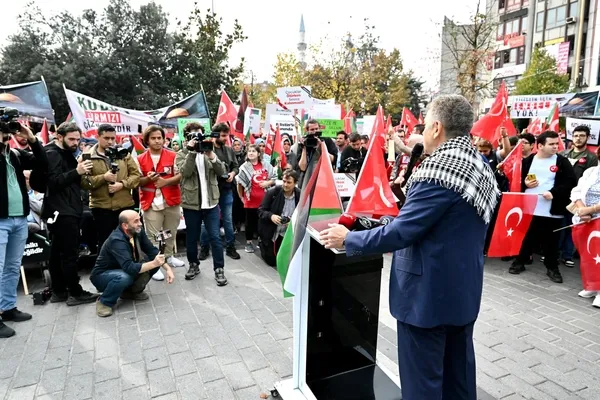 Filistin’deki masum insanların katledilmesine seyirci kalamayacaklarını vurgulayan Usta, şöyle devam etti: “Canilere ve onun başındaki İsrail’in Başbakanına buradan vatandaş olarak, duyarlı insan olarak bir şekilde sesimizi duyurmak zorundayız. Çünkü sadece masum insanlar öldürülmüyor. Dünyaya yeni gözünü açmış, ameliyat olmak durumunda kalmış, elektriklerin, doğal gazın, petrolün, enerjinin olmadığı bir ortamda telefon ışığı ile narkozsuz ameliyat olan çocukların sağlığına kavuşması için sesimizi duyurmak istiyoruz. Daha henüz dünyaya gözünü açmamış, hamile bir kadının öldürülerek karnından canlı çıkan o Filistinli kardeşimizin yaşaması için sesimizi duyurmak istiyoruz. Oradaki insanların da tıpkı dünyanın dört bir tarafındaki insanlar gibi sesini duyurması için buradayız.”
