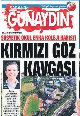 Tara Ailesi’ne ait özel kolejin genel müdürü Esra Tara’nın, bir öğrenciyle kavga edip karakola şikayet edilmesiyle ilgili olayı GÜNAYDIN manşete taşımıştı. Ünlü reklamcı Nail Keçili, Esra Tara’yı eleştiri yağmuruna tuttu: “Böyle olacağı belliydi. O, beli silahlı korumalarıyla okulda öğrencilere korku salan bir idareci!”