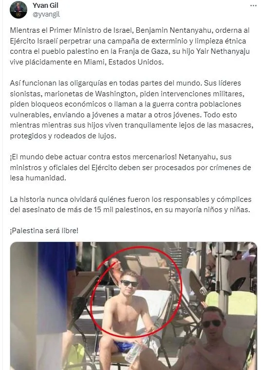 İsrail’in Gazze’ye saldırıları devam ederken İsrail Başbakanı Netanyahu’nun oğlu Yair Netanyahu’nun Miami’de tatil yaptığı iddia edilmişti.