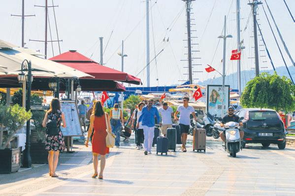 Cennet adası ve önüne kurulan balık çiftliğindeyiz. Su o kadar berrak ki daha demir atar atmaz bir balık sürüsü yanaştı teknemize. Derken bir anda tekneden derin sulara atlayanlar, balıklarla yüzmenin tadını doyasıya yaşayanlar. Ortam bir anda hareketleniyor. Kısa bir deniz keyfinden sonra tekne görevlisi sesleniyor, daha görülecek çok yerimiz var, yine demir almanın vakti. Fosforlu Mağara’yı gördükten sonra teknemiz Turunç Köyü limanına demir atıyor. Limanı teknelerden, kafe ve restoranlardan yükselen sesler dolduruyor. Limandan çarşıya uzanan yol boyunca hediyelik eşya mağazaları, plaj kıyafetleri ve aksesuarı satan mağazalar, teknelerden inenlere kısa zaman diliminde birkaç parça satmanın telaşında. Biraz yürüdükçe karşımıza çıkan sardunyalar, zakkumlar, begonviller cennete mi düştük hissi uyandırıyor. Rüzgâr, çamlarla süslü yüksek tepelerden mis gibi temiz havayı getirip burada bırakıyor. Köyün havası muhteşem. Turunç’ta süren 1.5 saatlik keyifli gezintiden sonra tekneye dönmenin zamanı geldi. Marmaris Limanı, hem tekne turumuzun hem de Marmaris gezimizin bittiğinin habercisi gibi… Yoğun bir temponun ardından gelen bu küçük Marmaris turu, ruhumuza ve bedenimize verdiğimiz en güzel hediyeydi…