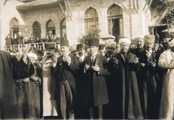 Atatürk ve devlet ricali Meclis’in önünde dua ediyor.