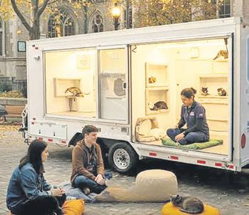 Dünya Ruh Sağlığı Günü kapsamında New York’ta bu hafta oldukça sevimli ve yaratıcı bir etkinlik düzenlendi. “Cats as Therapy Project” adını verdikleri bir girişim başladı, öyle ki bu proje kapsamında Therapod adı verilen mobil bir kedi terapi aracı, şehrin çeşitli üniversite kampüslerini dolaşıyor. High Line, NYU ve Fordham Lincoln Center kampüslerinde duraklayan bu özel podun içinde, sertifikalı terapi kedileriyle dolu sıcak ve huzurlu bir ortam hazırlanmış. Öğrenciler bu kapsülün içine girip, 10 dakikalık mini terapi seanslarına katılabiliyor.