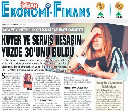 SABAH’ın en son 14 Ocak’ta gündeme getirdiği kuver ve servis ücretleri haberleri karşılık buldu. Ticaret Bakanlığı dün yeni bir yönetmelik yayımlayarak kuver ve servis ücretlerine “dur” dedi. Resmi Gazete’de yayımlanarak yürürlüğe giren yönetmelikle artık lokanta, kafe, restoran ve pastane gibi işletmeler servis, kuver ve masa ücreti veya benzeri adlar altında tüketiciden ayrıca bir ücret talep edemeyecek. Faturaya kafasına göre “servis bedeli” ekleyen işletmeye 1 milyon 439 bin liraya varan cezalar kesilecek. Ancak yönetmelikte yer alan bir detay, 4857 sayılı İş Kanunu’nun 51. maddesini saklı tuttu. Buna göre, işletmeler kendi kârları için “hizmet bedeli” alamayacak ancak işçiye dağıtılan yasal “yüzde” sistemi devam edebilecek. Bu durum yeni bir karmaşanın da fitili ateşlendi.