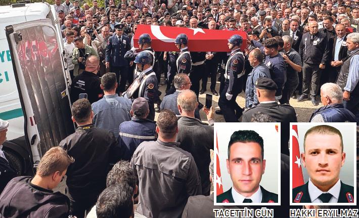 Sakarya’nın Akyazı ilçesindeki trafik kazasında şehit olan 2 jandarma personeli memleketlerinde toprağa verildi. Jandarma Astsubay Kıdemli Çavuş Tacettin Gün ve Jandarma Astsubay Kıdemli Çavuş Hakkı Eryılmaz’ın cenazeleri Kocaeli’nden memleketlerine uğurlandı. Şehit Gün’ün (39) cenazesi, Bursa’nın merkez Osmangazi ilçesindeki tarihi Ulu Cami’de ikindi namazını müteakip kılınan cenaze namazının ardından Hamitler Şehitliği’ne defnedildi. Törene şehidin eşi Yeşim Gün, çocukları Ramazan Emir Gün (8) ve Alya Gün (5) ile yöneticiler ve yakınları katıldı. Şehit Eryılmaz (28) için ise Manisa’nın Akhisar ilçesi Yeğenoba Mahallesi’nde tören düzenlendi.