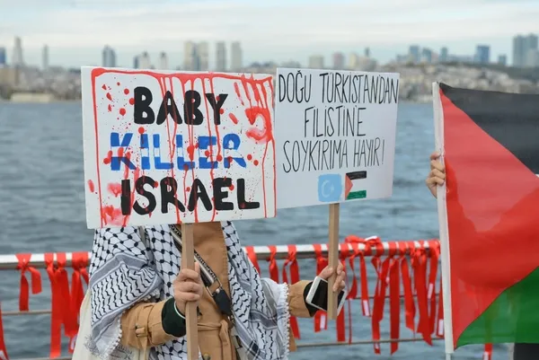 Slices of Resistance Topluluğu ve Yetim Vakfı üyeleri İsrail’in Gazze’de sürdürdüğü soykırımı protesto etmek amacıyla Cuma namazı çıkışında Üsküdar Oxford ve Saraybosna’da eş zamanlı olarak “Susturulan her ses için harekete geç” sloganıyla katledilenlerin isimlerinin yazıldığı kırmızı kurdeleleri sahile bağladı.