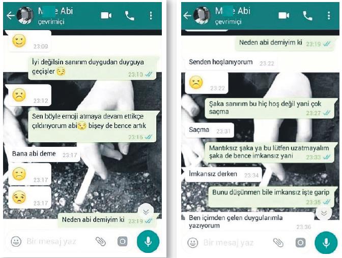 Kendisine ‘ağabey’ diyen genç kıza art arda emojiler gönderen Akyolcular, genç kızın tüm uyarılarına rağmen “Bana abi deme, senden hoşlanıyorum” diyerek tacize devam etmişti. SABAH‘ın ortaya çıkardığı taciz skandalı sonrası, Akyolcular’ın daha önce de partide sekreterlik yapan 28 yaşındaki Z.G. isimli kadına hoşlandığını söyleyip, elle sarkıntılık ettiği ve fiziksel tacizde bulunduğu ortaya çıkmıştı.