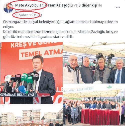 Aradan geçen süre içinde CHP çatısı altında yeniden boy göstermeye başlayan Mete Akyolcular’ın partiye yaptığı üyelik başvurusunun da kabul edildiği öğrenildi. Akyolcular’ın sosyal medya hesabından da parti çalışmalarını paylaşmaya başladığı görüldü. Osmangazi Belediye Başkanı Erkan Aydın’ın yanından bir an olsun ayrılmayan ve belediyenin etkinlikleri de katılan Akyolcular’ın, Belediyenin organizasyon işlerini yürüttüğü öğrenildi. CHP’li Osmangazi Belediye Başkanı Erkan Aydın’ın, organizasyon işlerini Mete Akyolcular’a bıraktığı, Akyolcular’ın organizasyon şirketleriyle anlaşıp, Belediyeyle iş bağlantısı yaptığı öğrenildi.